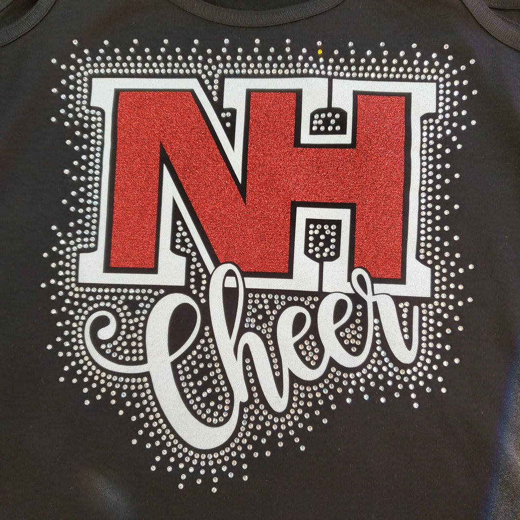 North Hills Indians NH Logo Cheer Spectacular Glitter and Rhinestone Design