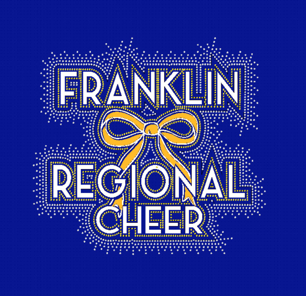 This glamorous design features two colors of glitter with the Franklin Regional text over Cheer with a contrasting bow. Cheer on your team with confidence and stand out from the crowd.