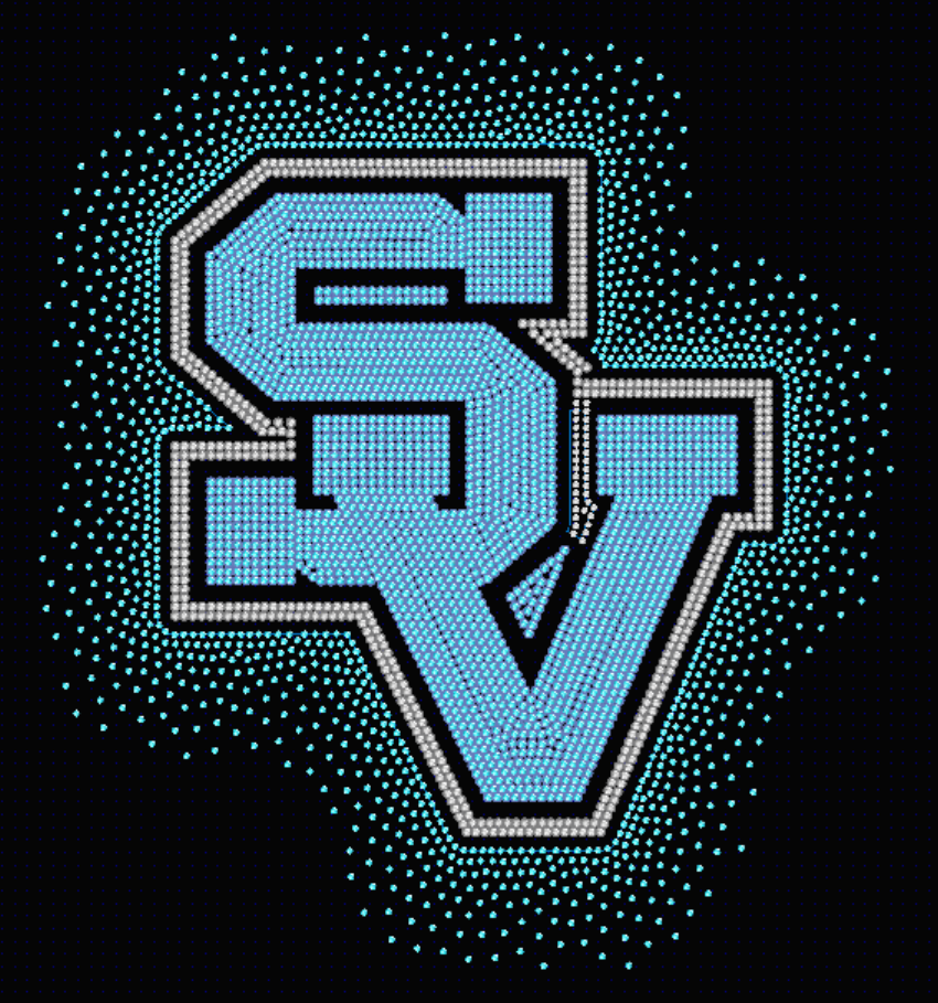 Seneca Valley Raiders SV Logo Solid Rhinestone with Blue stones surrounding